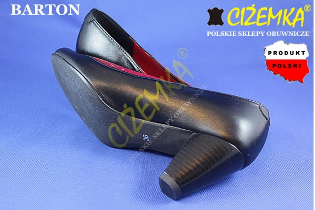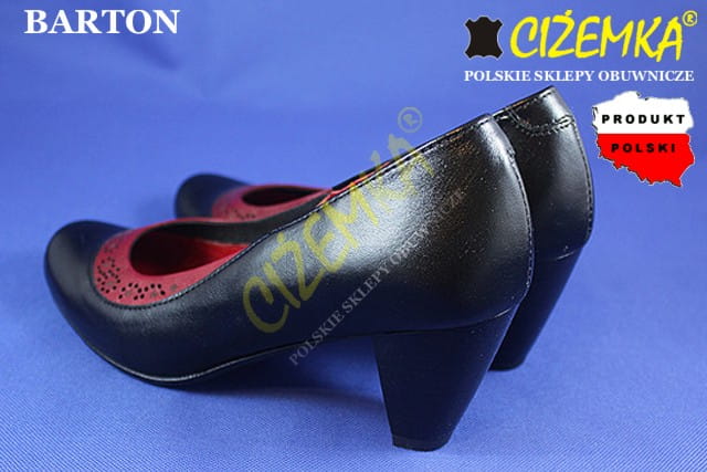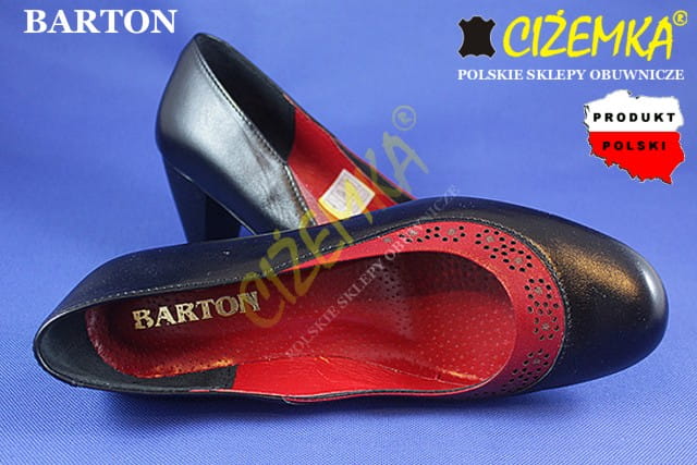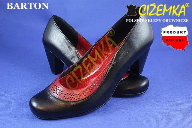 BARTON PÓŁBUTY czółenka DAMSKIE na obcasie 3214 CZARNE + czerwone dodatki