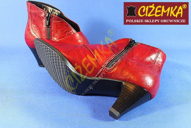 Botki półbuty na obcasie Damskie ocieplane 117 CZERWONE