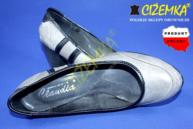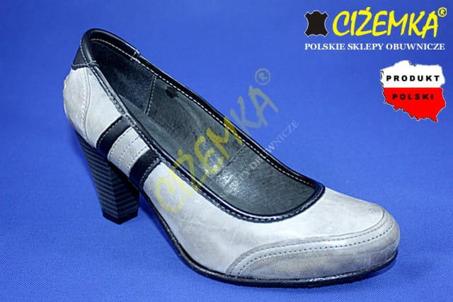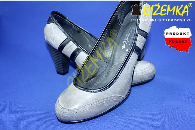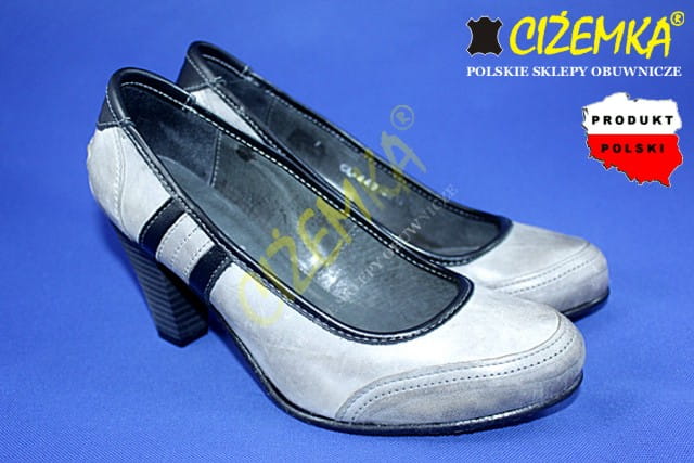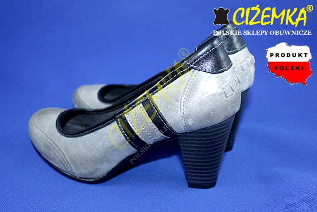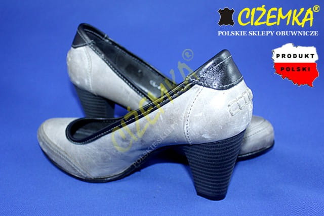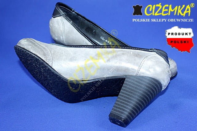 CZÓŁENKA PÓŁBUTY damskie na obcasie 449 SZARE+CZARNE