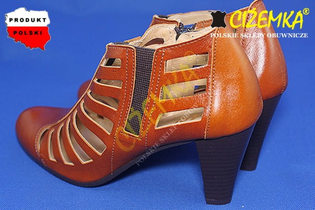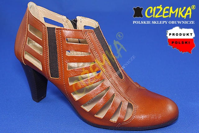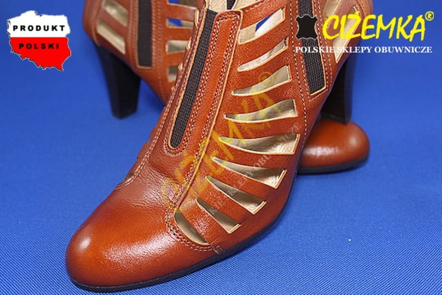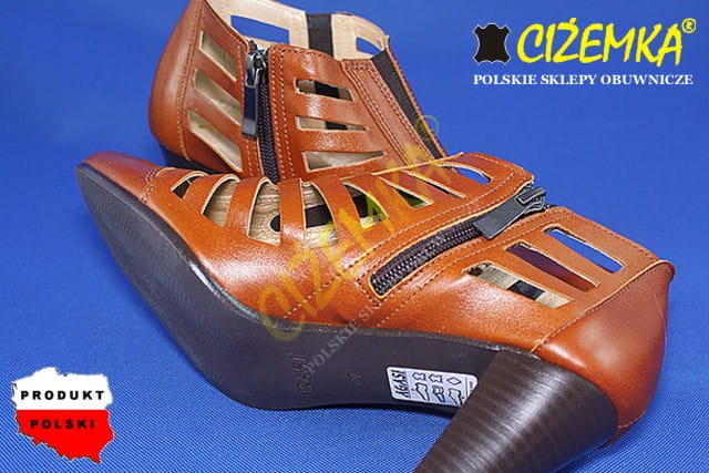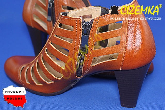 Czółenka Damskie na obcasie z dziurkami SKÓRA 207 JASNY BRĄZ