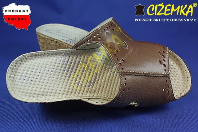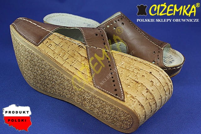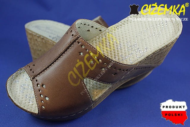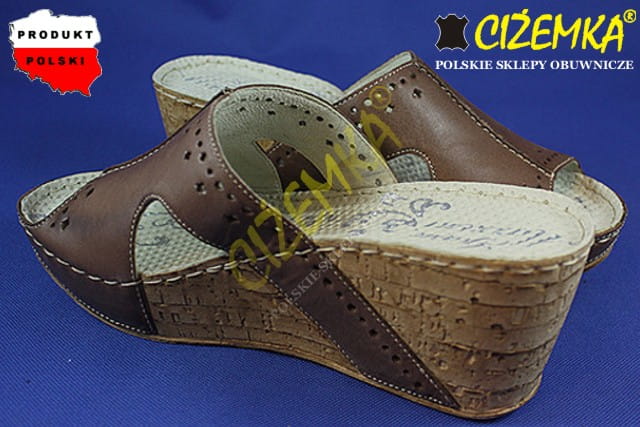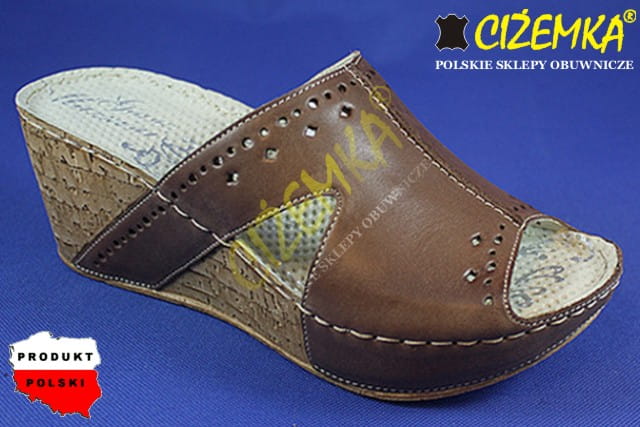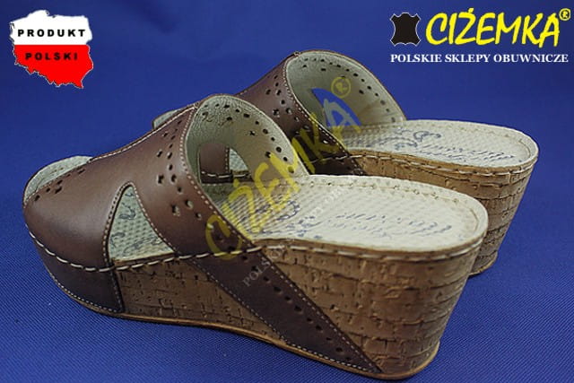 Gino Mazzini Klapki Damskie na Koturnie SKÓRA 663 Brąz cyprys