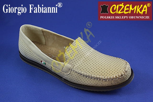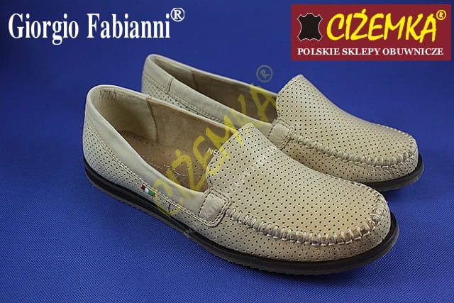 Giorgio Fabianni Półbuty MOKASYNY Damskie 655B beżowe perforacja