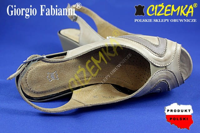 Giorgio Fabianni Sandały na koturnie Damskie 794 BEŻOWE z dodatkami cappucino