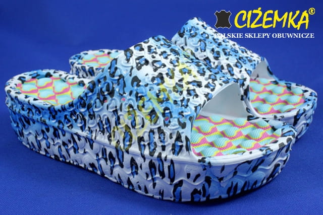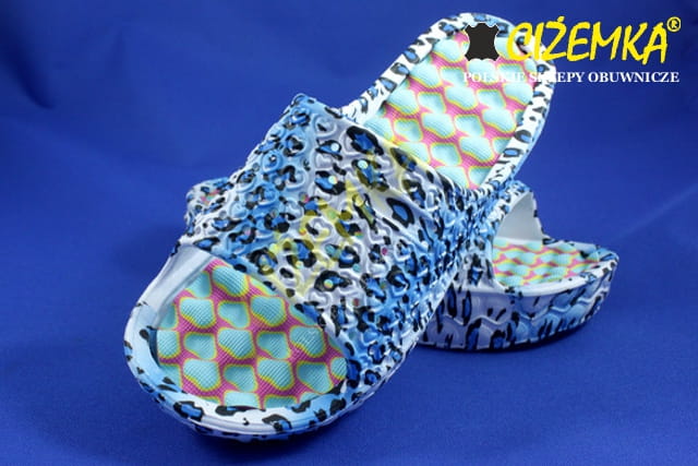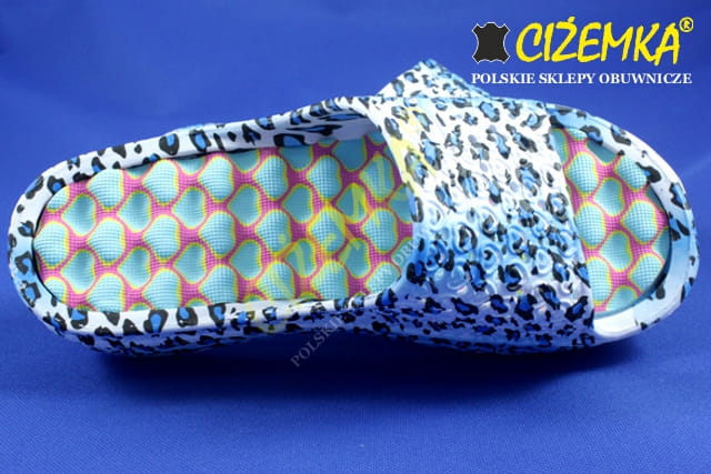 KLAPKI BASENOWE Z WKŁADKĄ MASUJĄCĄ DAMSKIE 1704 PANTERKA NIEBIESKIE SERCA 36-41