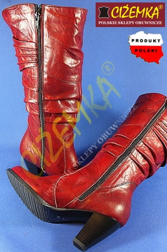 Kozaki Wysokie Damskie Ocieplane 26111 CZERWONE