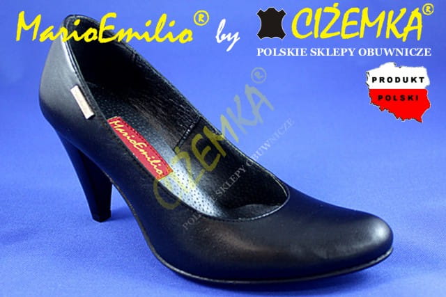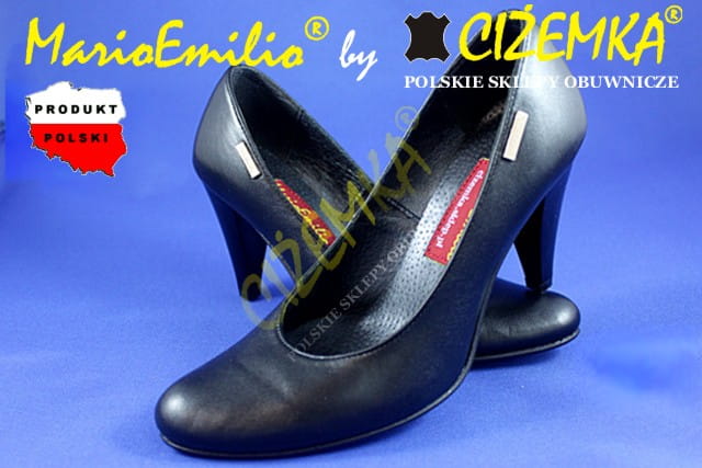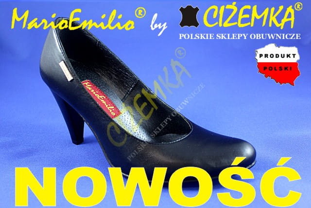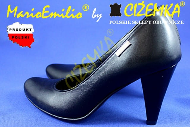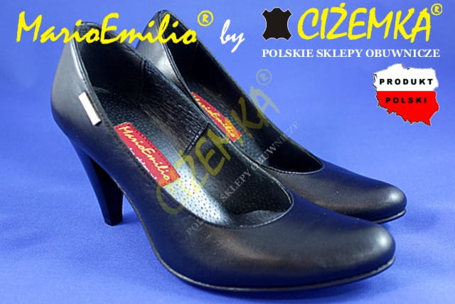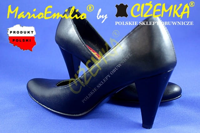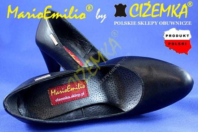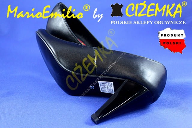MarioEmilio Czółenka Damskie GŁADKIE na obcasie 1738 CZARNE