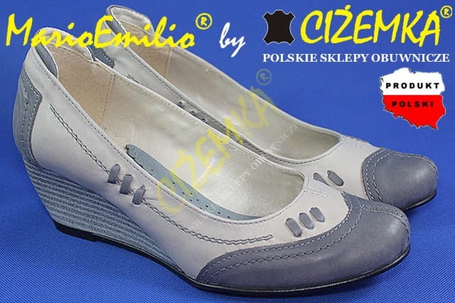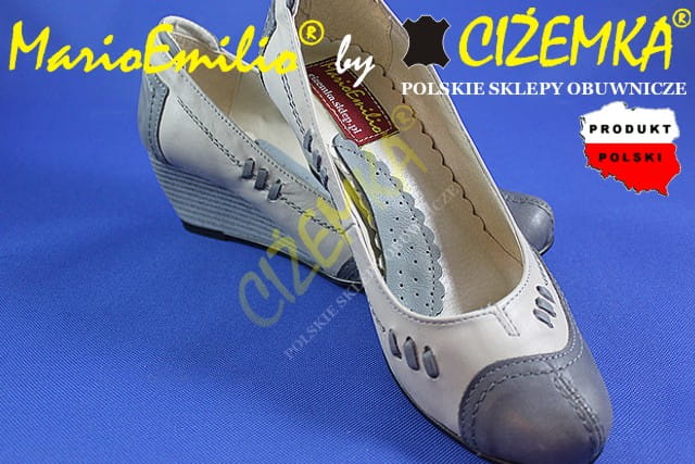 MarioEmilio Półbuty Czółenka Damskie Koturn 10 klin BEŻ POPIEL PROMOCJA