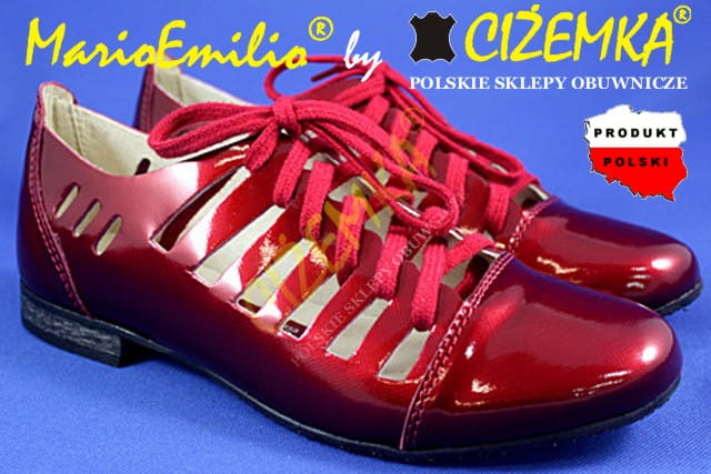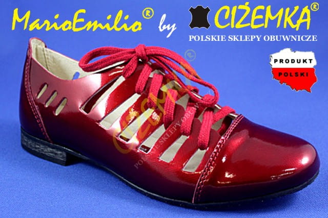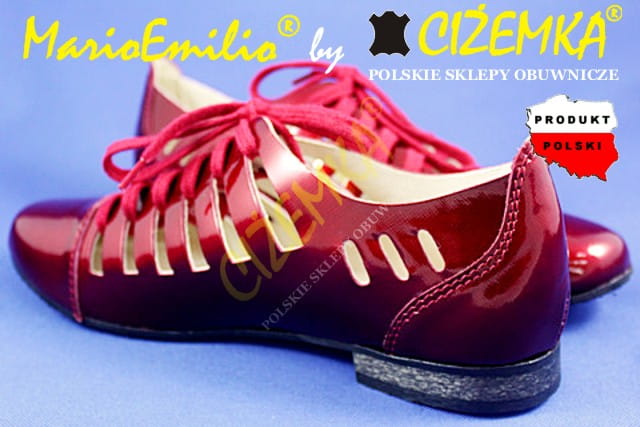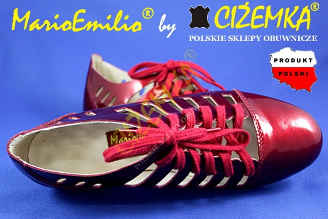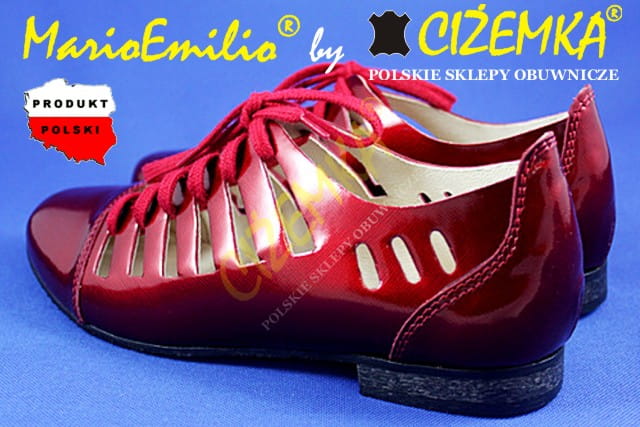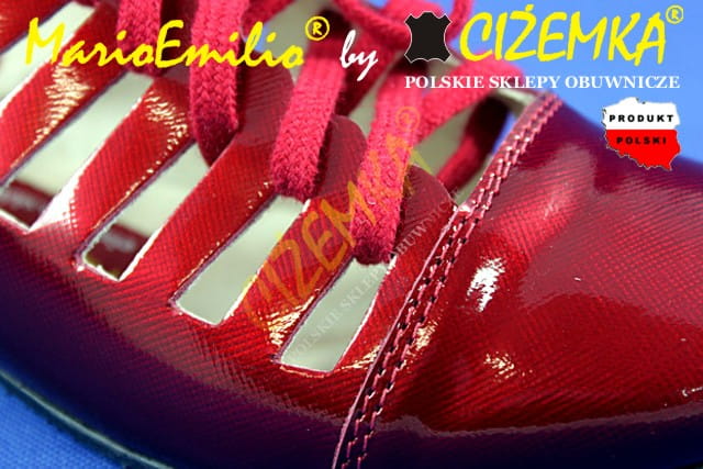 MarioEmilio Półbuty Damskie Sandały 744 SKÓRA LAKIEROWANA CZERWONE