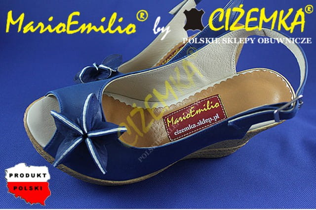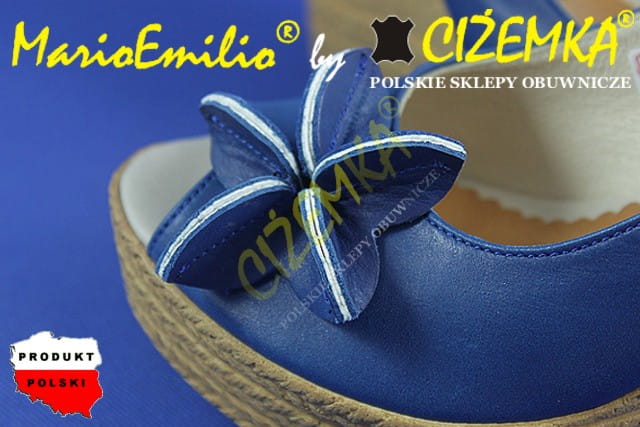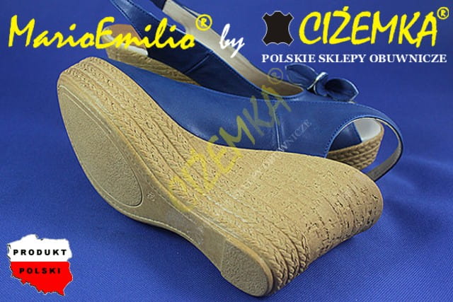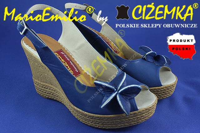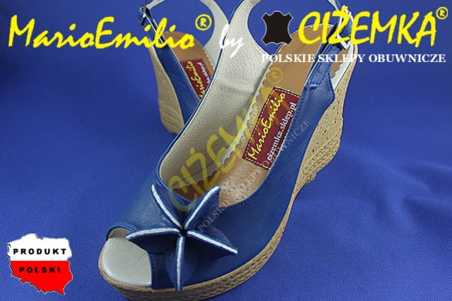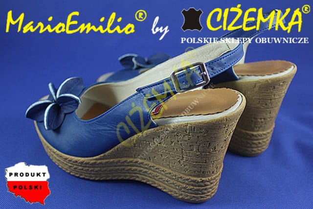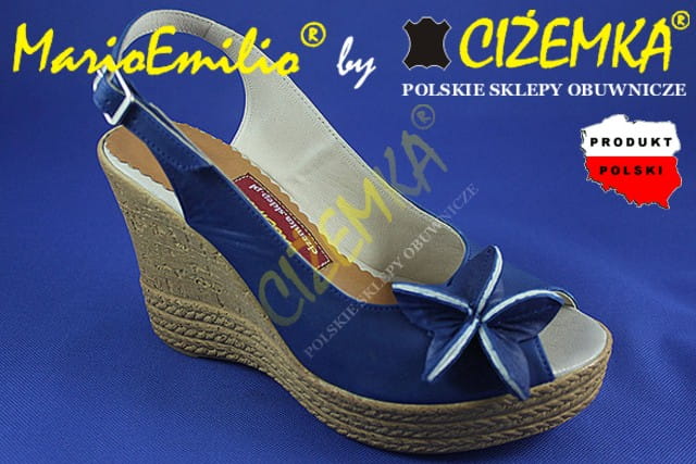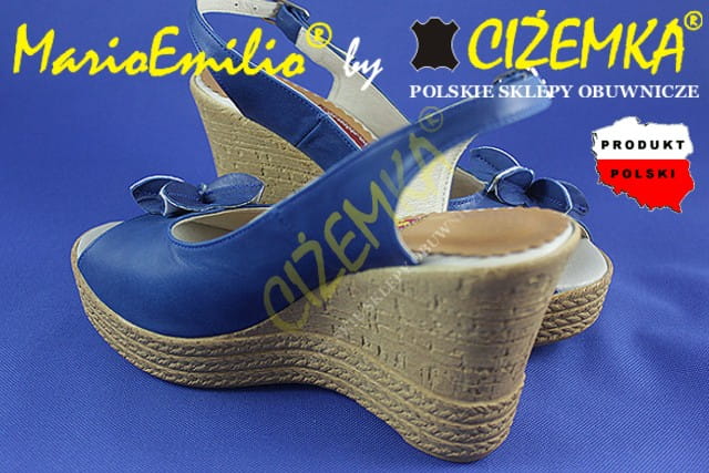 MarioEmilio Sandały Damskie na Koturnie SKÓRA 326 Granatowe
