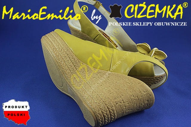 MarioEmilio Sandały Damskie na Koturnie SKÓRA 326 Żółte
