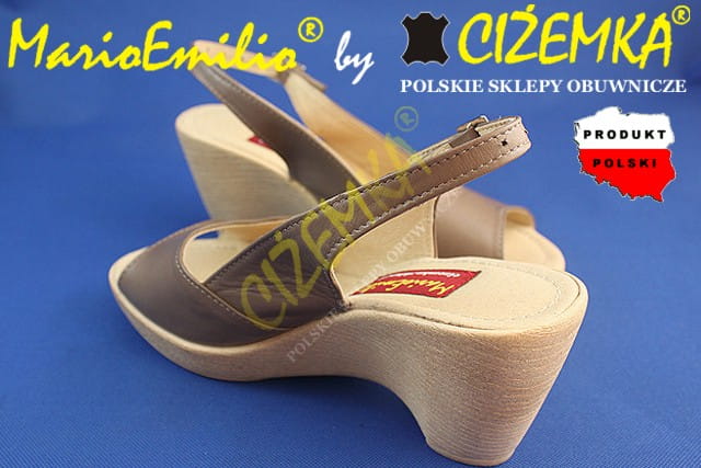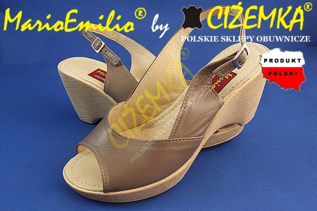 MarioEmilio Sandały KOTURNY Damskie na KOTURNIE 283 CIEMNY BEŻOWY
