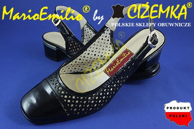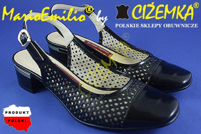 MarioEmilio Sandały Półbuty Damskie z dziurkami na obcasie SKÓRA 441 CZARNE