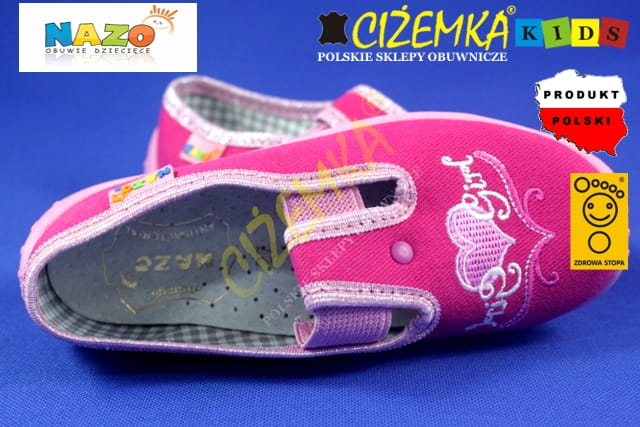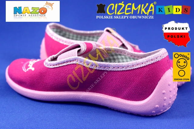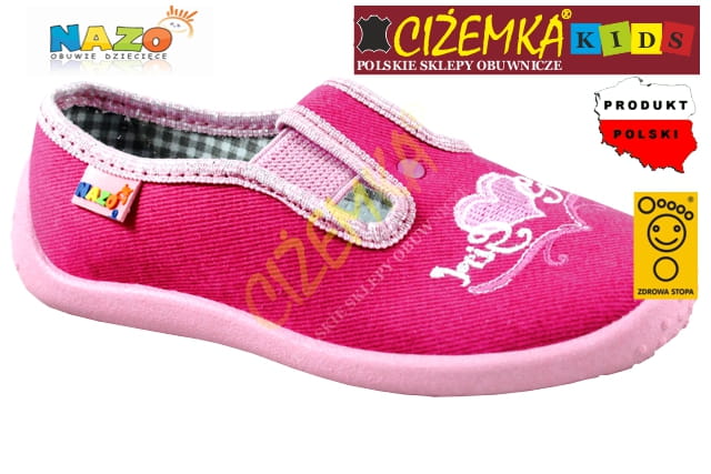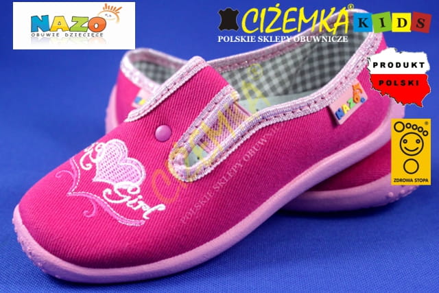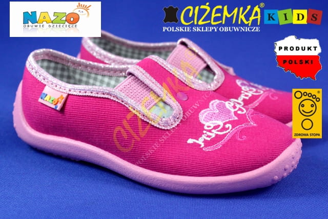 NAZO 004 różowe SERCA KAPCIE dziecięce balerinki BAWEŁNA