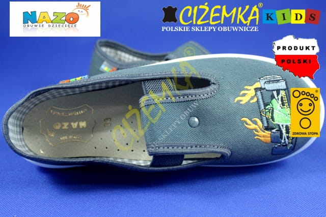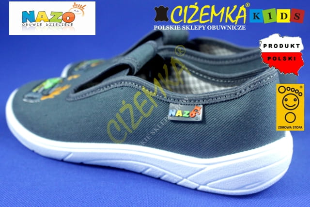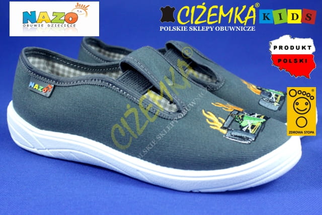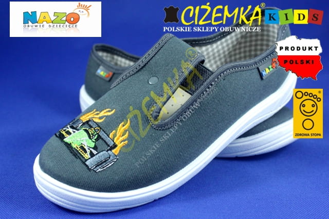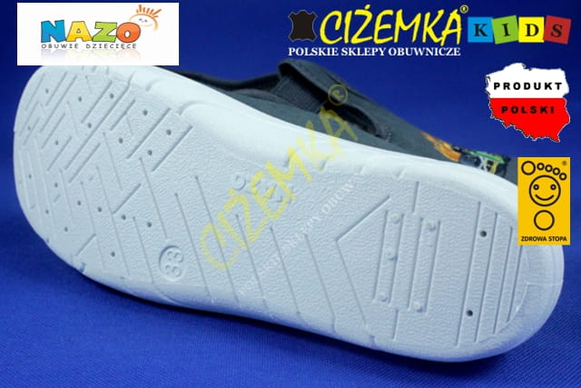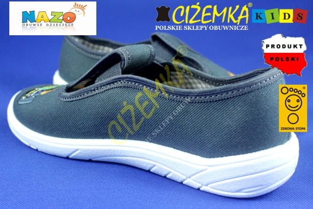 NAZO NOWOŚĆ KAPCIE dziecięce szkolne BAWEŁNA 017 szare z białą podeszwą F1 WYŚCIGÓWKA