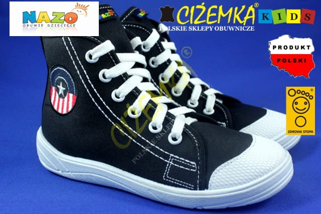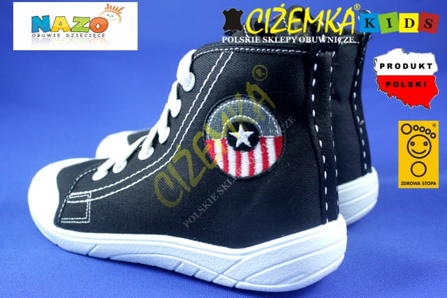 NAZO TRAMPKI dziecięce szkolne BAWEŁNA 031 czarne