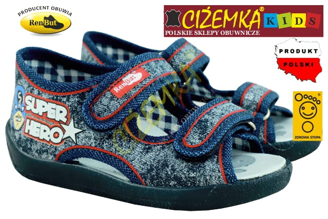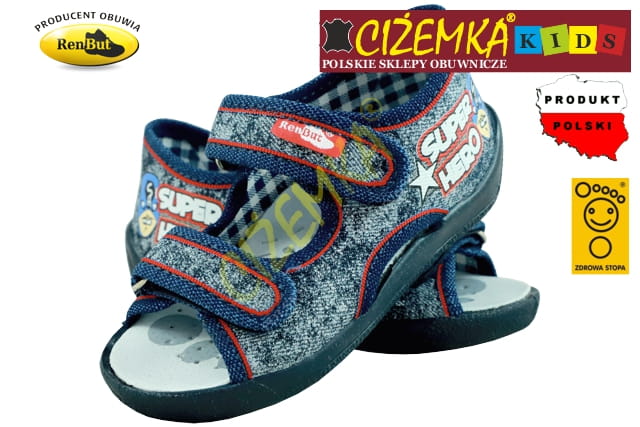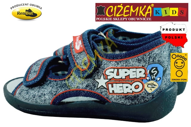 Renbut KAPCIE SANDAŁKI DZIECIĘCE 13112 JEANS PRZECIERANY SUPER HERO (19-27)