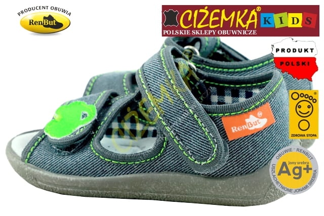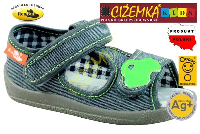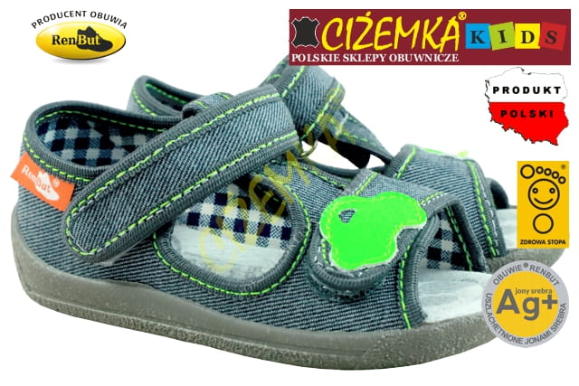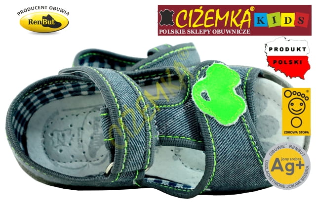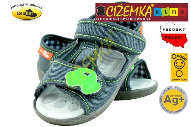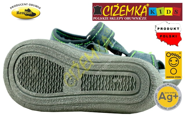 Renbut SANDAŁY SANDAŁKI DZIECIĘCE 13140 PROFILOWANE Ag+ POPIEL AUTO 3D (20-27)