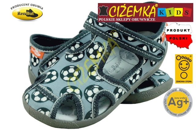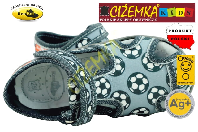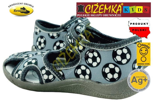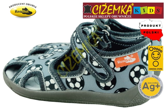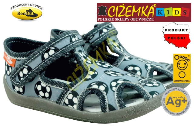Renbut SANDAŁY SANDAŁKI DZIECIĘCE 13141 PROFILOWANE Ag+ POPIEL PIŁKI (18-27)