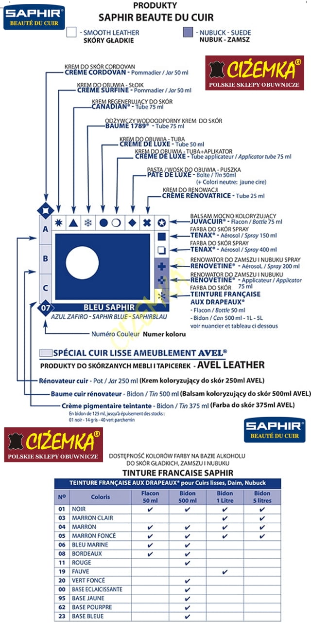 Saphir - karta kolorów dla produktów do skór gładkich, zamszu i nubuku