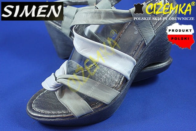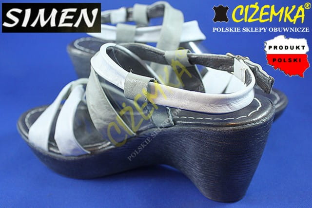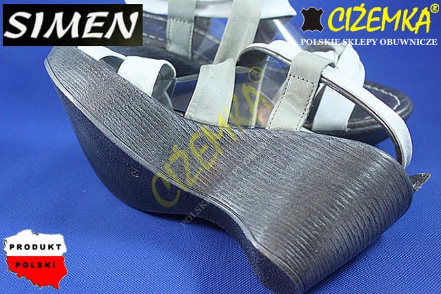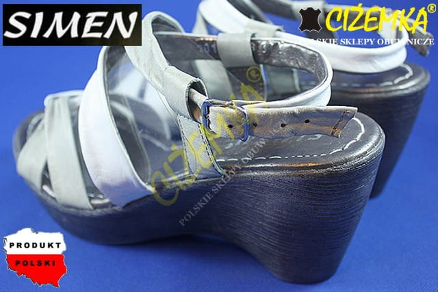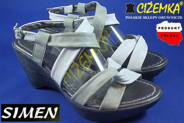 SIMEN Sandały Damskie na KOTURNIE 5598 kolor biały + szary