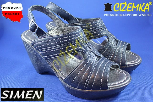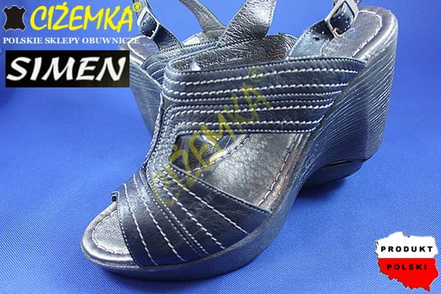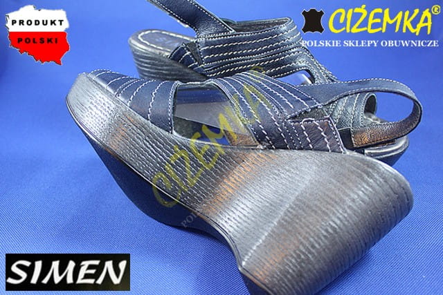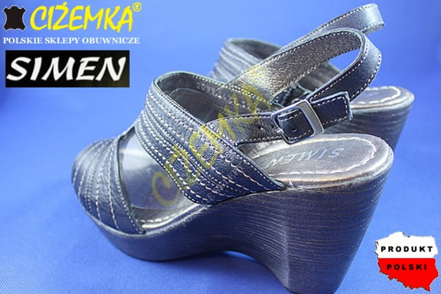 SIMEN Sandały Damskie na KOTURNIE 5627 kolor 1225 granat