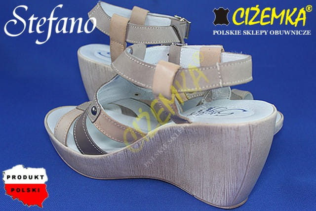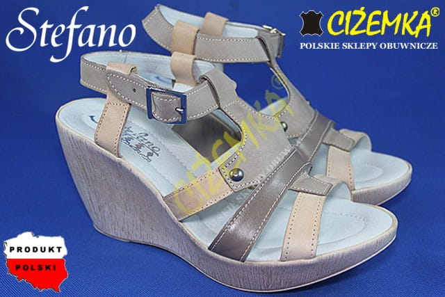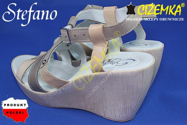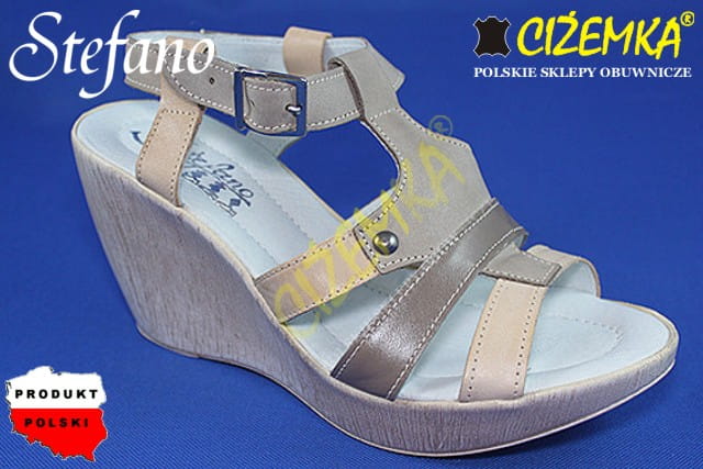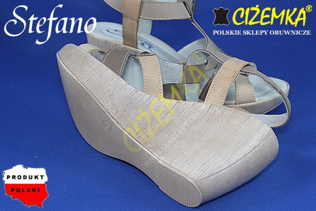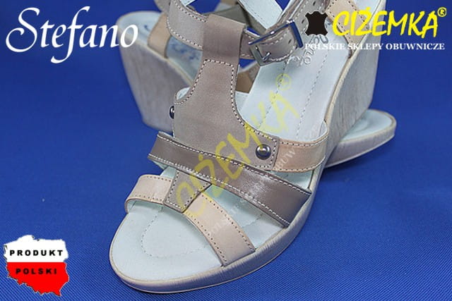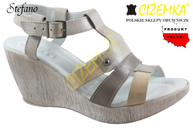 STEFANO 8611 Sandały Beżowe Damskie na koturnie SKÓRA