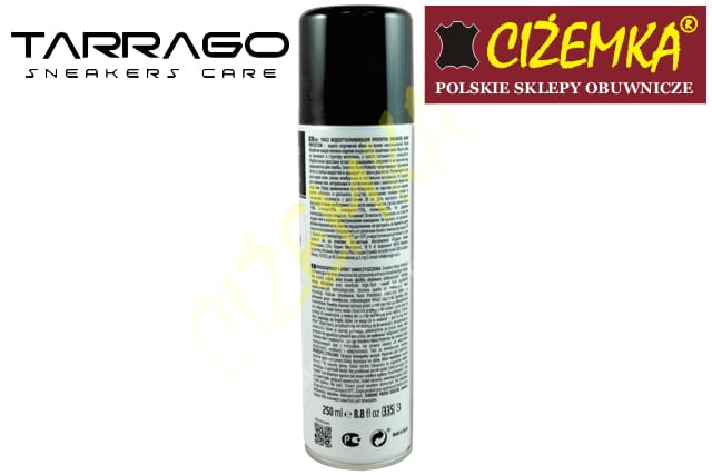 Wysokiej klasy wodoodporna ochrona sneakersów i akcesoriów stworzona na bazie NANOtechnologii po zastosowaniu daje efekt samoczyszczący. Aerozol wyprodukowany z myślą o miłośnikach streetwearu, chroni różnego rodzaju skóry i materiały najczęściej wykorzystywane przy produkcji Kicksów. Ochrona przed przemoczeniem, śniegiem i zabrudzeniami. W zależności od rodzaju skóry lub materiału zapewnia całkowitą wodoodporność lub wzmacnia właściwości hydrofobowe nie ograniczając przy tym naturalnych właściwości oddychających. Dzięki ulepszonej formule, TARRAGO Sneakers Protector skuteczniej chroni materiały syntetyczne i ekoskóry najczęściej wykorzystywane w produkcji kicksów. Ten produkt może być stosowany również do skór metalicznych.